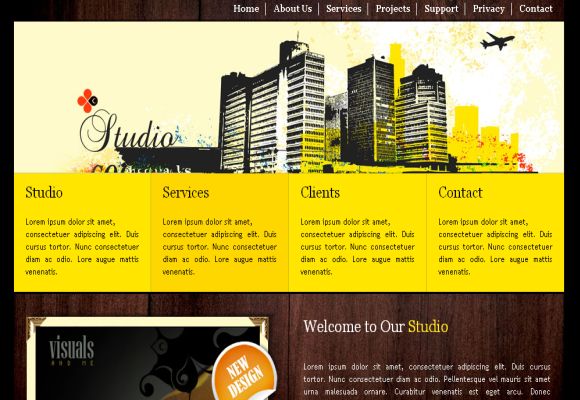 CSS Yellow Studio Template, Nice Beautiful Light On Dark Template with Very High Quality Design, ...