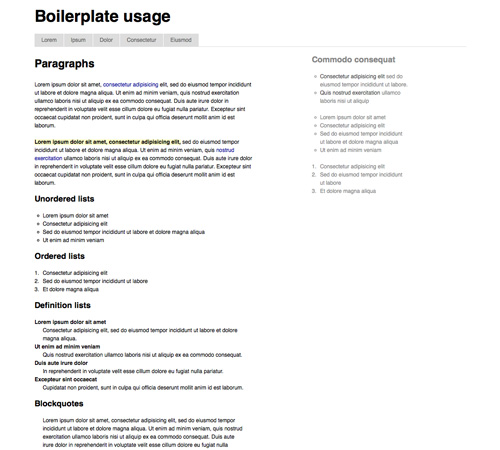 Boilerplate was built by one of the original developers of Blueprint. It’s a stripped down framework that only includes the essentials to start a project. It also strives to use semantic naming conventions, unlike many frameworks out there.