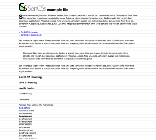 SenCSs is a bit different than other CSS frameworks. It imposes no layout style on designers, but does make typography and other repetitive elements easier to style. It includes a basic framework for styling that stays close to a browser’s base styles, sets a vertical rhythm for all elements, and sets a cross-browser typographic standard.