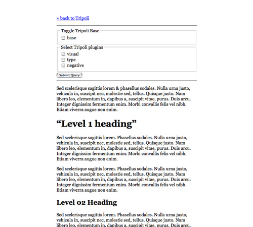 Tripoli also aims to help users who have little knowledge of CSS to write code that actually looks good and works well. It also helps designers create good typography based on established standards, and is standards-compliant. There are also plugins available to extend its usefulness.