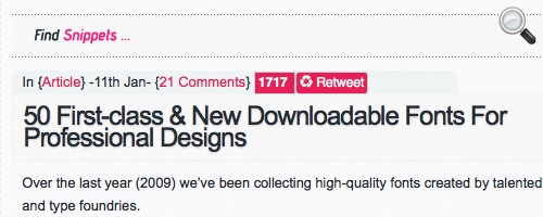 John Resig created a simple script for tracking the number of people visiting a blog post from Twitter, in a completely unobtrusive manner. The script itself is completely standalone (no dependencies) and can be included in any page relatively painlessly. Additionally, since it’s just HTML, CSS, and JavaScript, it’s completely themeable and customizable to the style of your site.