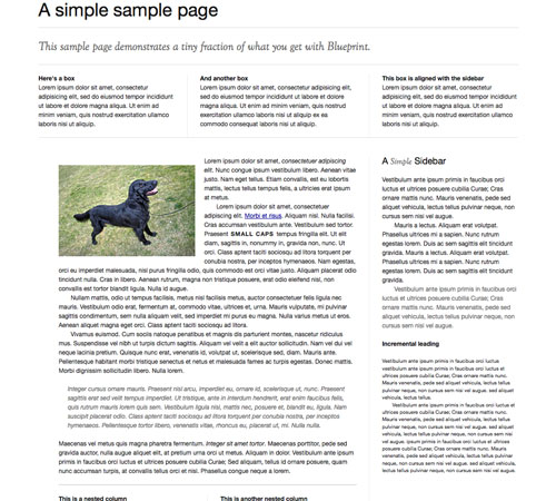 Blueprint is a robust CSS framework that uses a grid and has built-in typography. It also includes plugins for certain design options, including buttons and tabs, and built-in form styles. The website includes a number of examples of sites built on Blueprint.