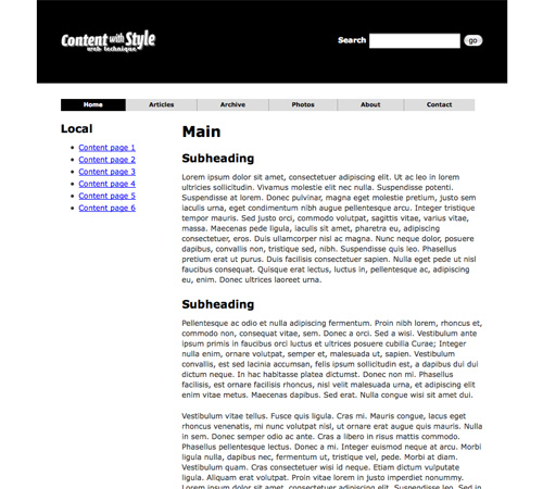 CWS also focuses on semantic markup, including naming conventions for the basic building blocks of the six layouts. It changes the structure of how pages are laid out to make more important content show up first in the code (header, main content, sub content, local nav, etc.).
