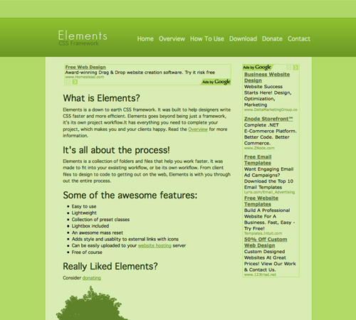 What it comes with: The download package includes folders for all of the structural elements of Elements, CSS and JavaScript files, an index.html file, and image files necessary for the layout. No documentation is included, though the files are all well-commented.