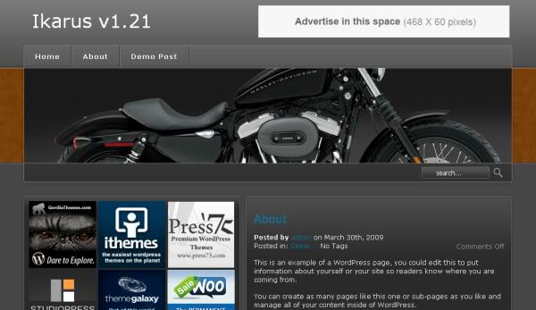 Free Wordpress Bikes Magazine Web2.0 Theme, High Quality Design Theme For Wordpress 2.8 Called Ikarus ...